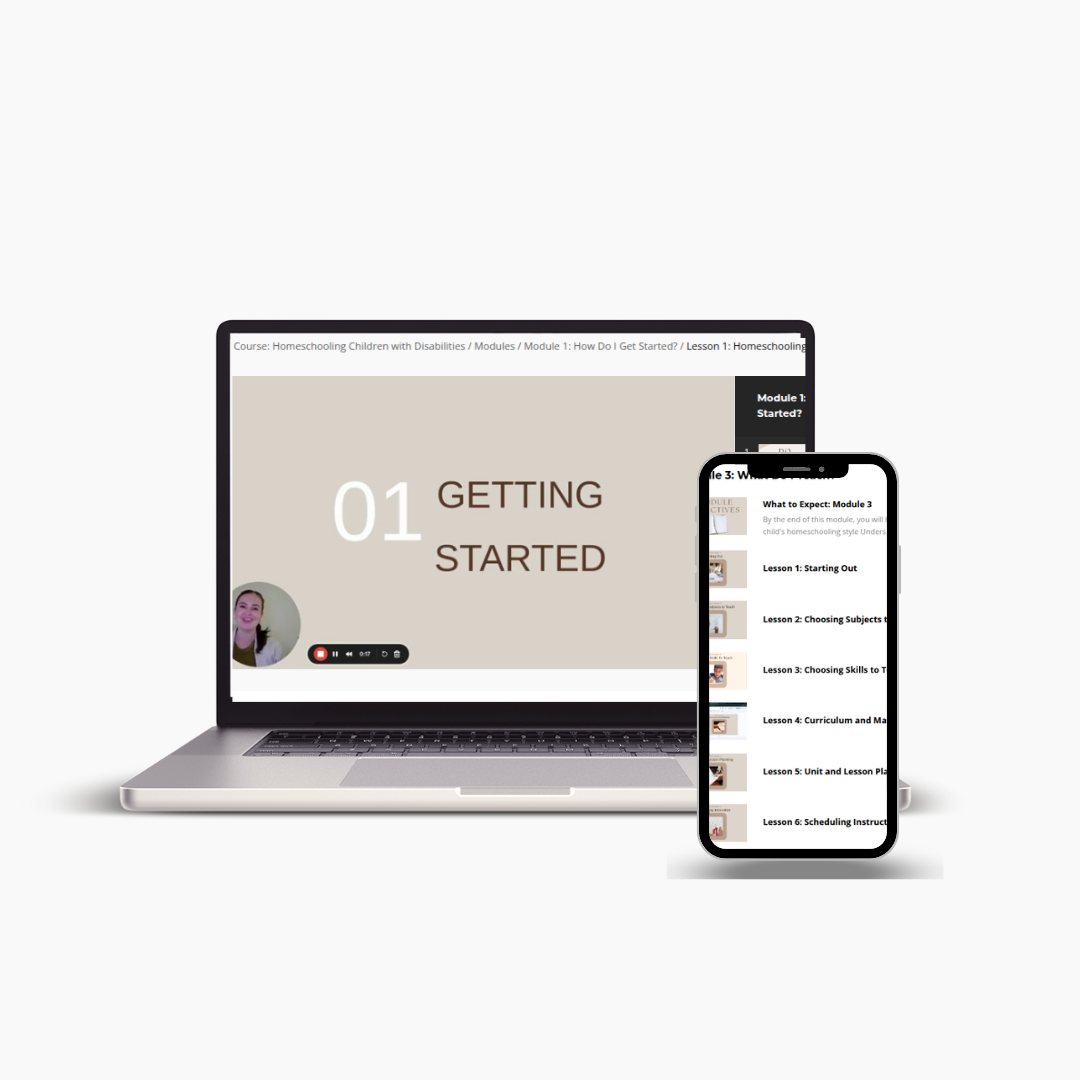 The Homeschooling For All Membership is an affordable, supportive space designed to make homeschooling children with disabilities easier and less overwhelming. Your membership includes full access to the Homeschooling for All Parent Training Hub, exclusive Printables Vault, monthly webinars, and a welcoming community group where you can ask any homeschooling question anytime.