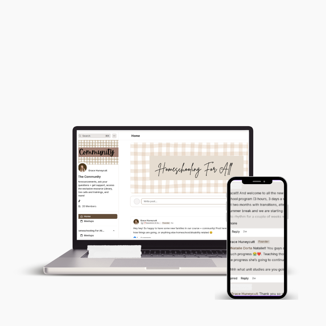 When you post your questions in the community, you’ll get direct feedback, encouragement, and personalized suggestions from Grace, so you’ll never feel like you’re doing this alone. Our community is here to make sure you always feel supported, understood, and confident as you homeschool your child.